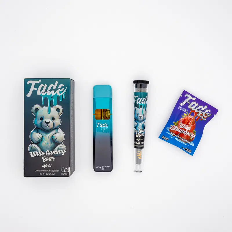 FADE 3-IN-1 DISPOSABLE (WHITE GUMMY BEAR – HYBRID) X PREROLL (WHITE GUMMY BEAR – HYBRID) X GUMMY (WILD STRAWBERRY)